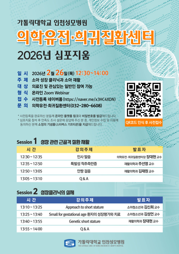공지 | 2026 의학유전·희귀질환 온라인 심포지엄 개최